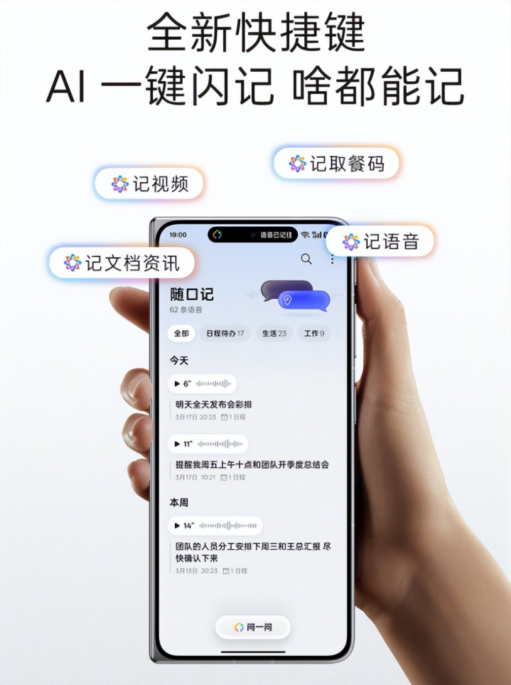 AI一键闪记:在文档、长文资讯、视频、取餐码、账单等页面,一键捕捉并自动索求关键信息,生成结构化节录。无论是会议纪要照旧购物清单,十足帮你整理得清清白白。这那里是手机,几乎是随身的“常识核心”。