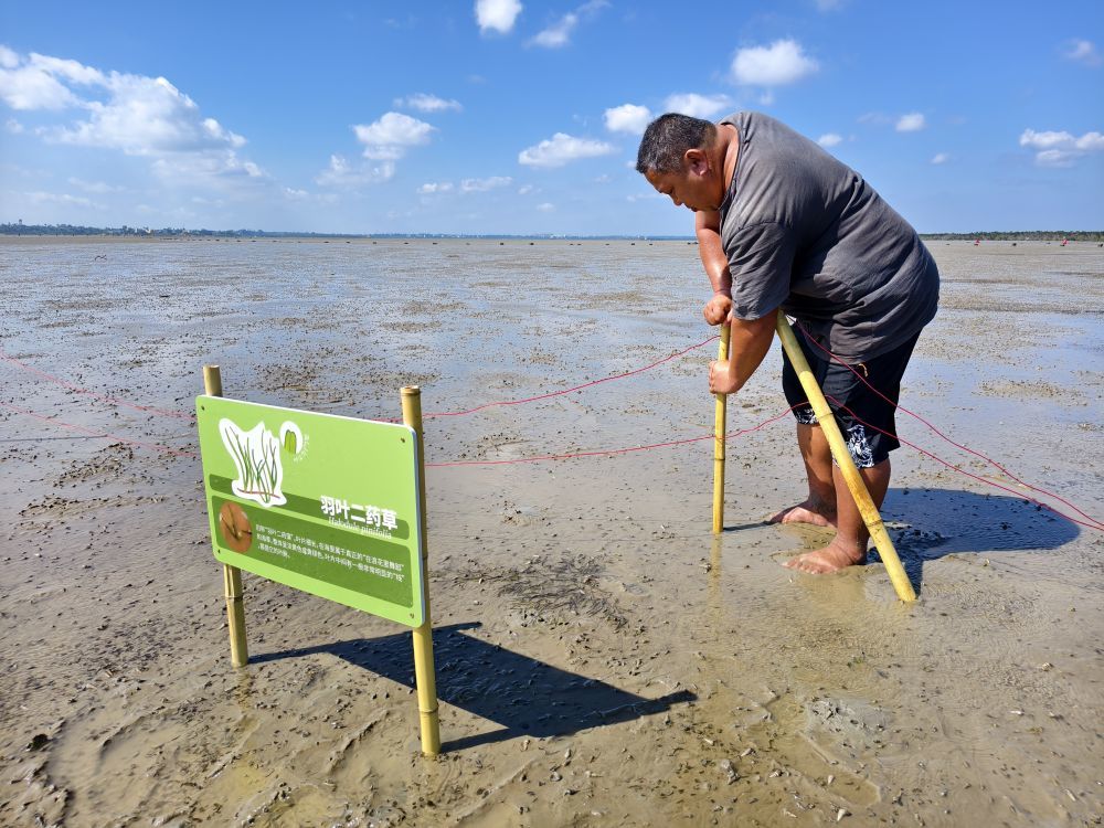 北港村村民装置海草科普牌及围栏。新华社发