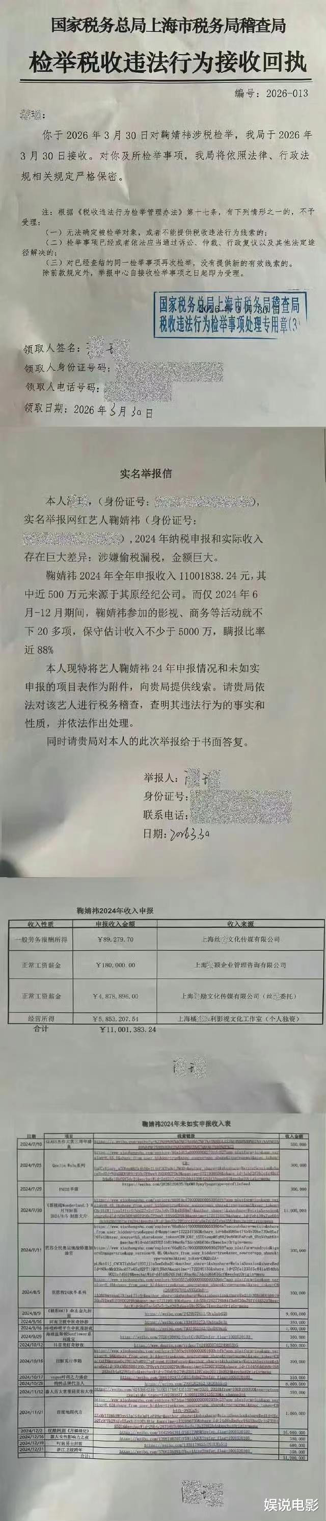 举报内容炫耀,鞠婧祎在2024年全年呈文收入1100.138324万元,其中近500万元开头于其原经纪公司,而仅2024年6月到12月时期,鞠婧祎投入的影视、商务等行径就不下20项,保守忖度收入不少于5000万,瞒报比率近88%。