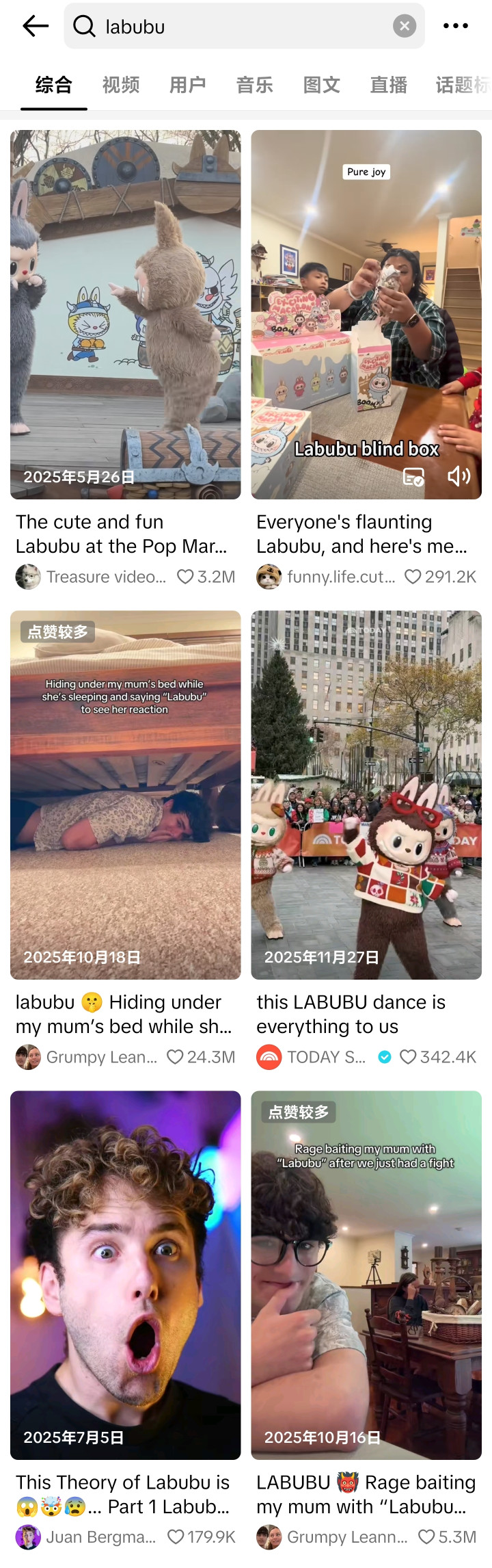 在国外版抖音TikTok上,Labubu的开箱视频动辄播放量过千万、过亿,比比都是。