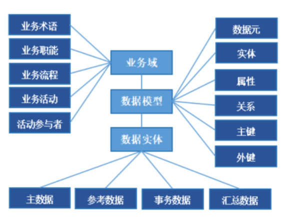 雷同来说,组织的数据组成不错贯通为三个层级:业务域、数据模子、数据实体。